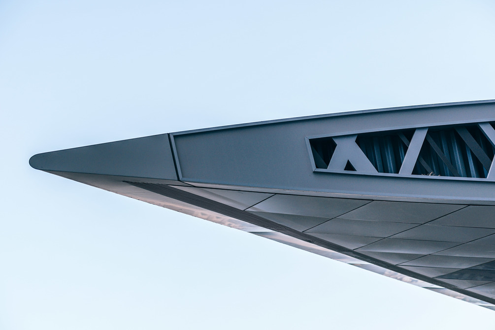 Triangle shaped top with futuristic design at a tall building in Dubai