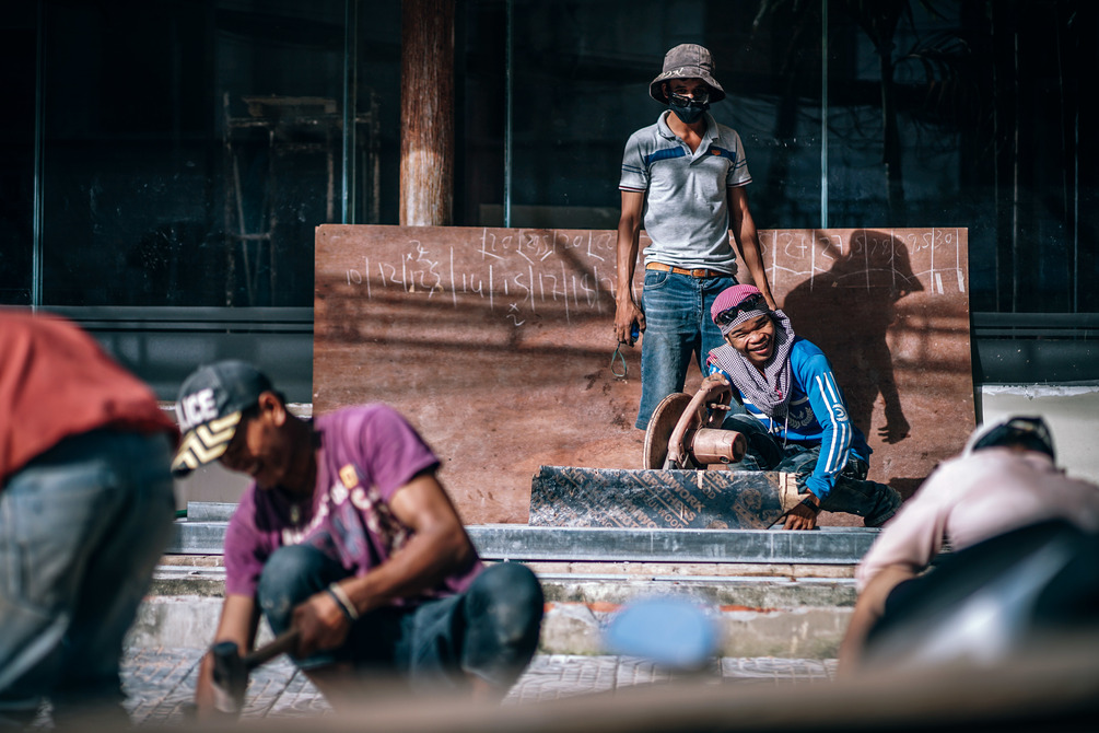 Cambodian Men Constructing a New Hotel in Siem Reap, Cambodia (6000 x 4000px)
