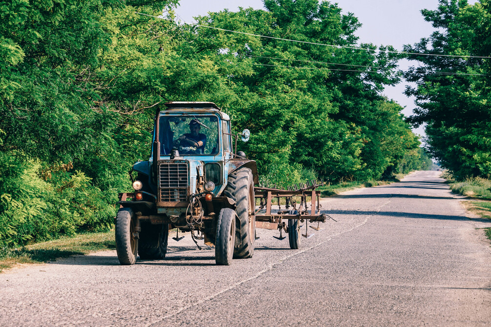 Tractor Driving Through a Russian Country Side Road (6000 x 4000px)