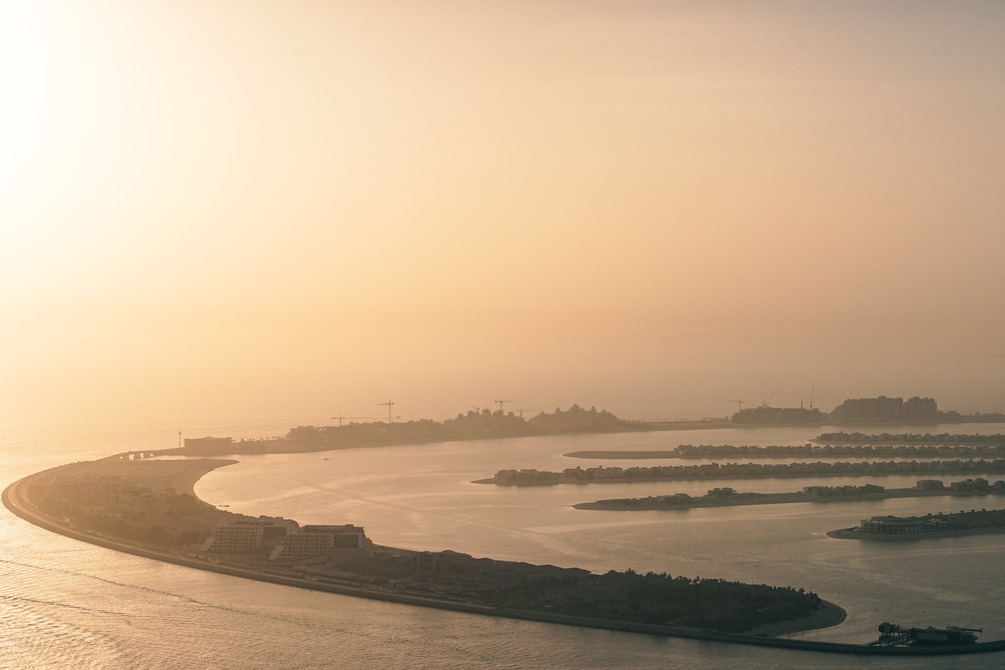 Sunset photography of the Palm Islands in Dubai