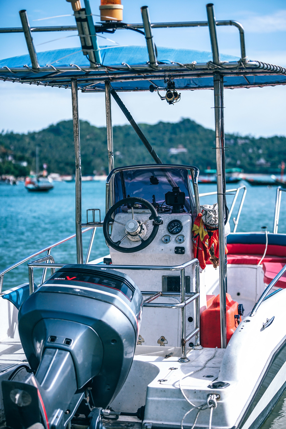The Helm of a Speedboat Ready to Drift Away (4000 x 6000px)