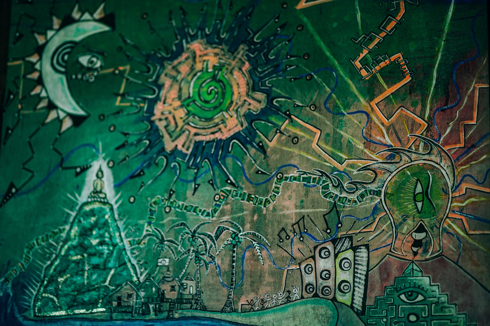 Beautiful Hippie Art on a Coffee Shop Wall (6000 x 4000px)