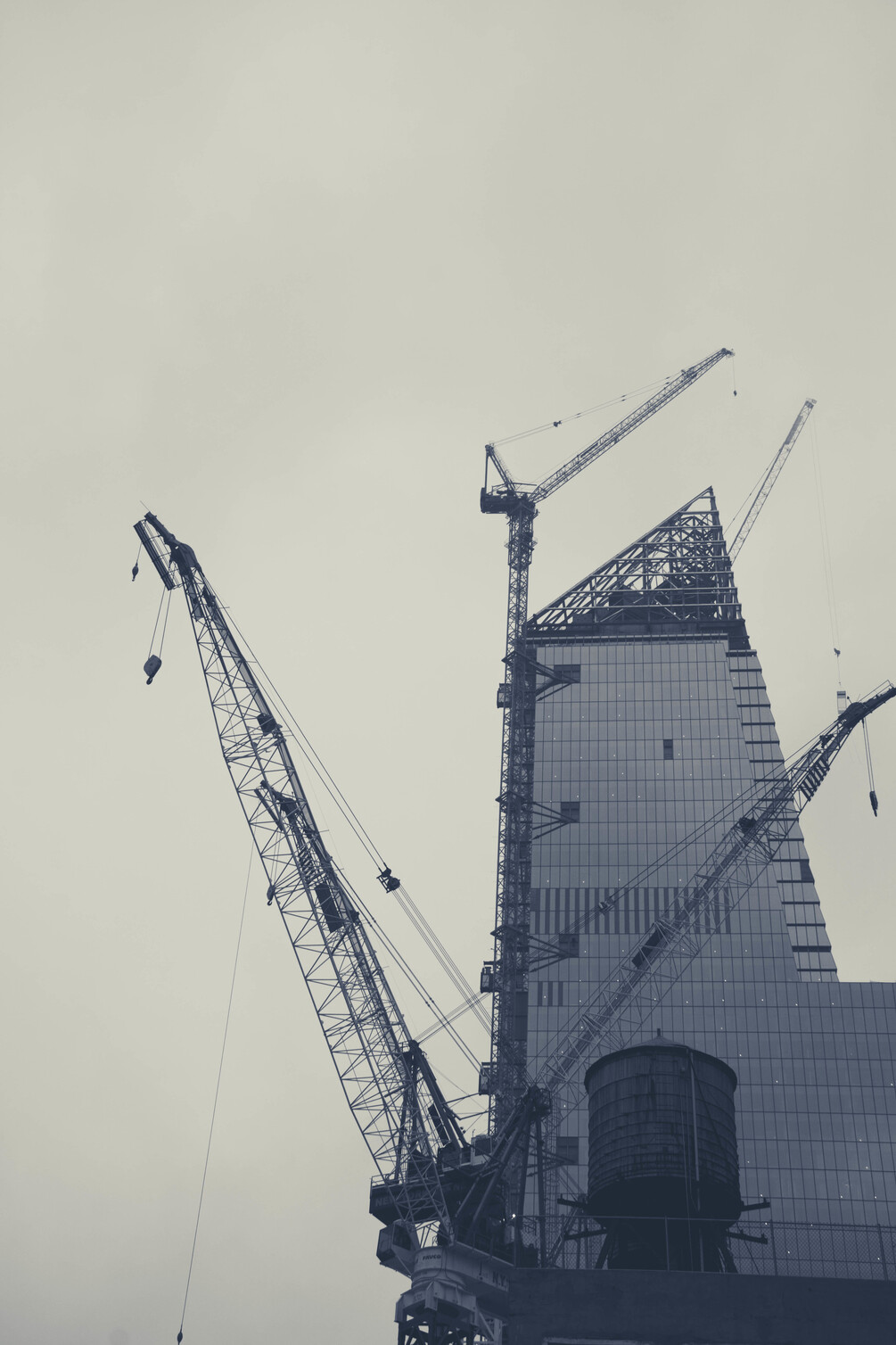 Cranes surrounding a tall building in New York City