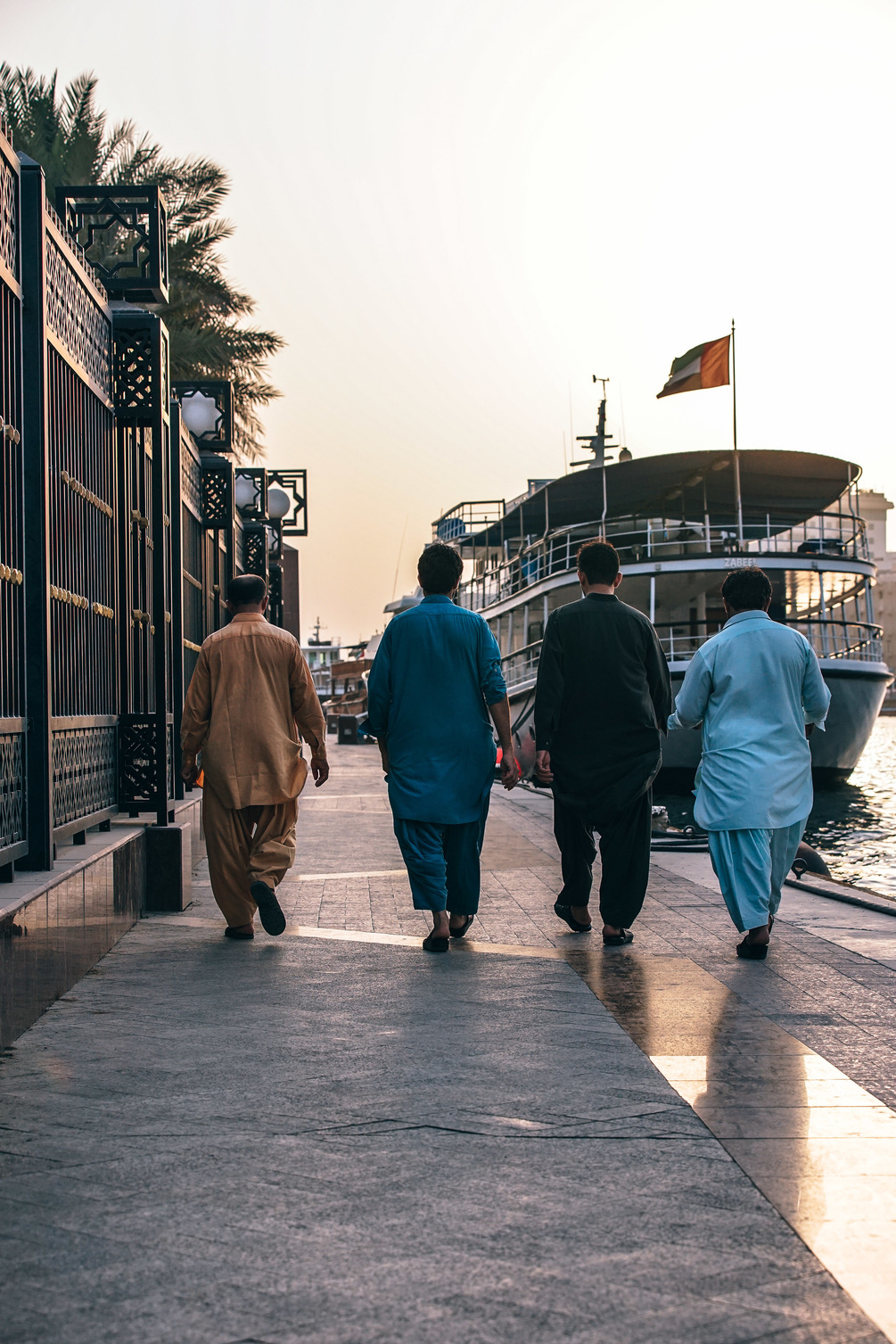 Four Men Walking along the Dubai Marina next to the Canal (4000 x 6000px)
