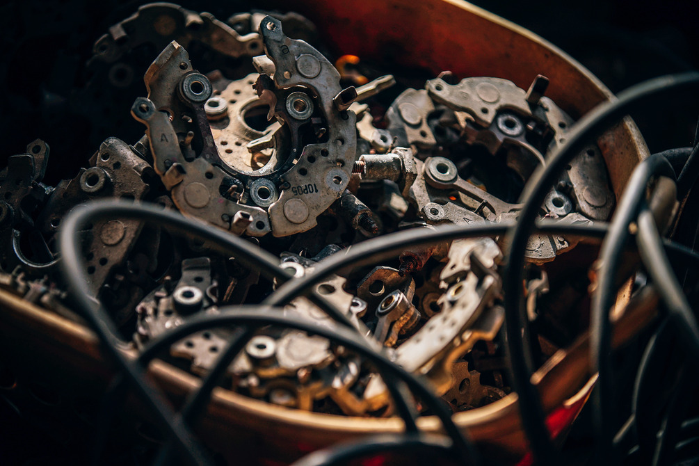 Old Rusty Automotive Parts in a Plastic Bucket (6000 x 4000px)