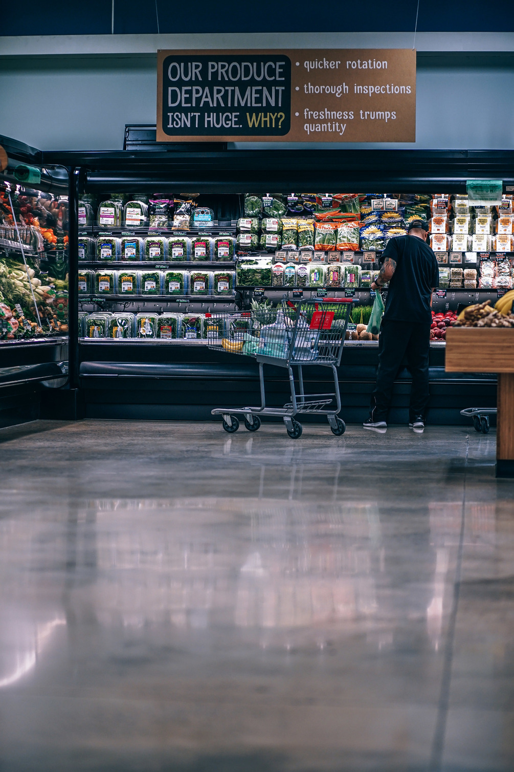 Man shopping for fruit in an organic grocery store.