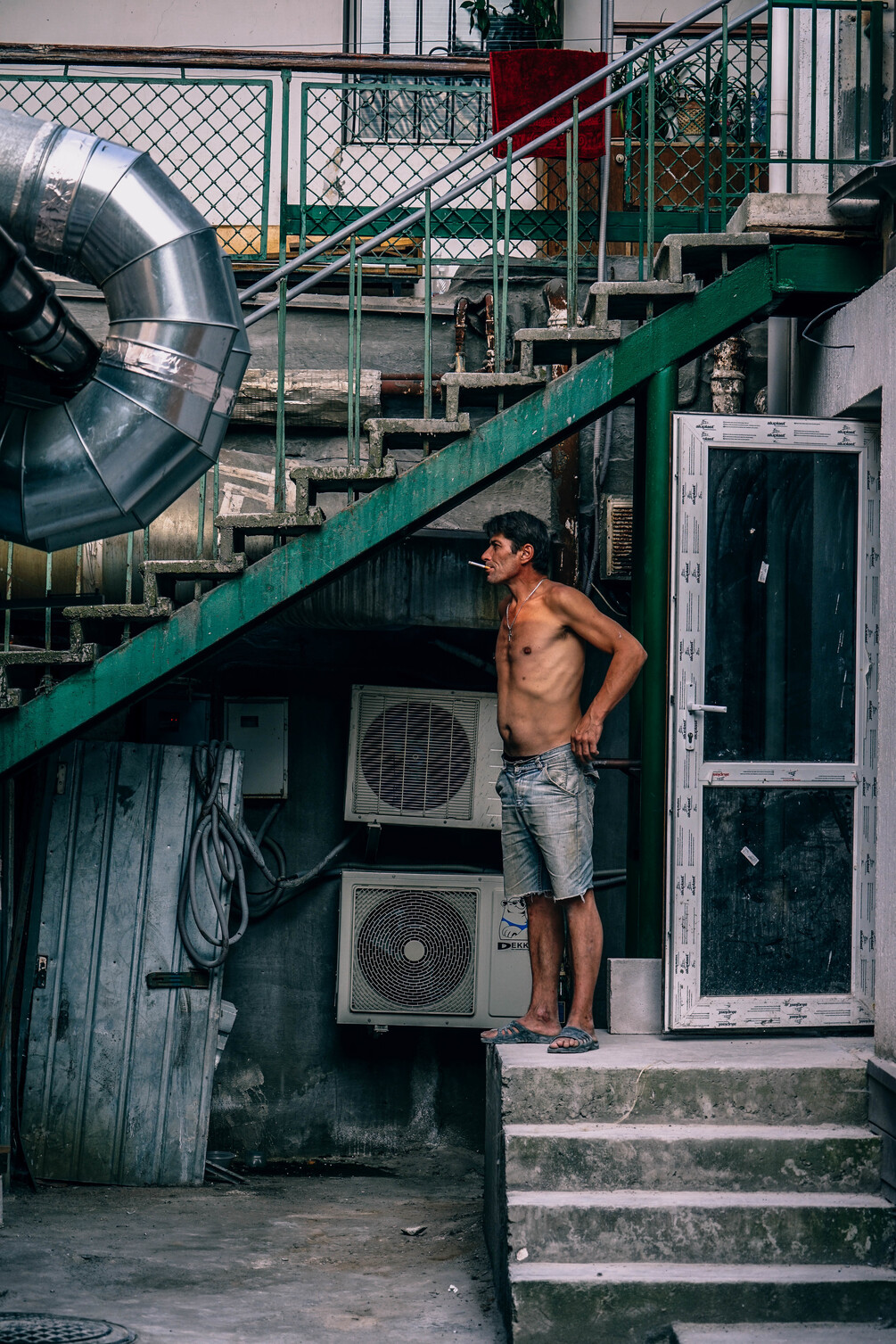 Shirtless Man in Yalta Smoking a Cigarette Just Outside of his House (4000 x 6000px)